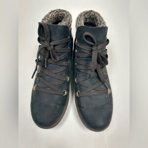 Chic cowhide design with brown leather trim. Perfect for everyday style.
