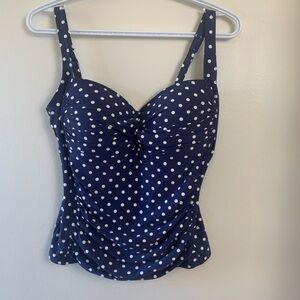 Bond-eye NWOT Tankini Top, Blue w White Polka Dots, Multi Fit Cup , No Wires