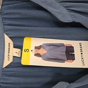 Lucky Brand NWT Women's Size S Blue Notched Neck Sandwash Boho Top Peasant Blouse