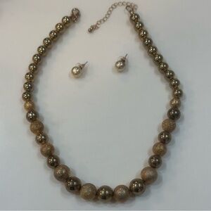 Premiere Designs Textured Gold Bead 16”L Graduated Necklace & Stud Earrings Set