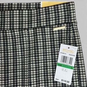 Michael Michael Kors Houndstooth Flare Pull-On Pants Stretchy L Black White NWT