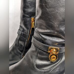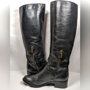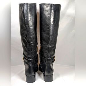 Michael Kors Hamilton Lock Black Leather Riding Boots 2" Heel Size 7M