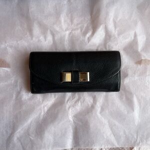 Chloé, black wallet, bow detail, leather chic wallet, card holder, stylish, bow accent, cute wallet, everyday wallet