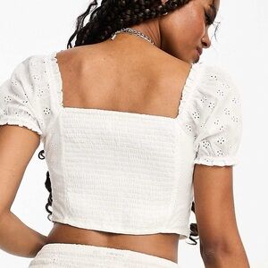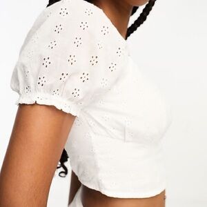 Hollister White Eyelet Puff Sleeve Crop Top