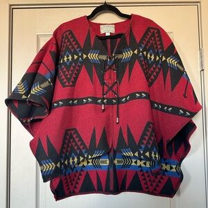 Silverado Vintage Southwest Poncho Top Made in USA (Red/Black/Blue)