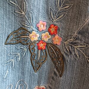 Aloya Women's Floral Embroidered Denim Jacket