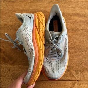 Hoka Athletic Shoes in Gray and Orange