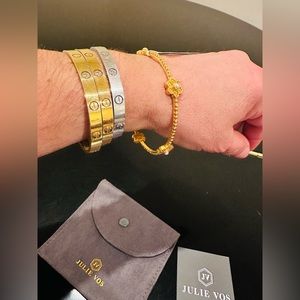 Authentic Luxury Minimalist Julie Vos Flower Pearl Station Bangle/Bracelet