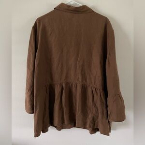 J.Jill 100% Linen Blazer Jacket Size 3X Ruffled Button Front Collared Lagenlook