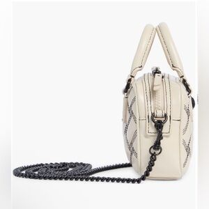 Carrying Options: Double top handles and a removable chain shoulder/crossbody strap