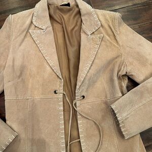 Joe Boxer Tan Leather Stitch Tie Front Suede Jacket Size Small