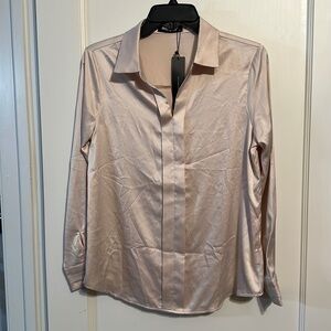 Allegra K Women's Elegant Blush Mauve Pink Long Sleeve Office Work Satin Blouse