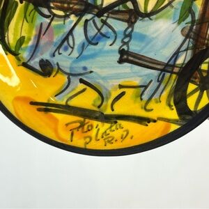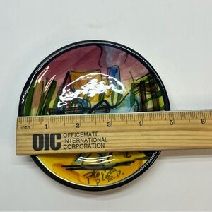 vintage hand painted 5 inch plate abstract colorful cart wagon rural pto plata