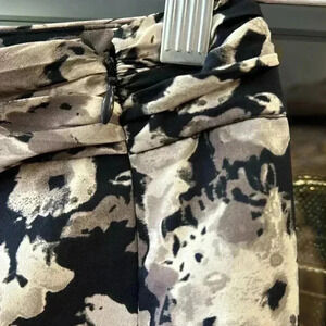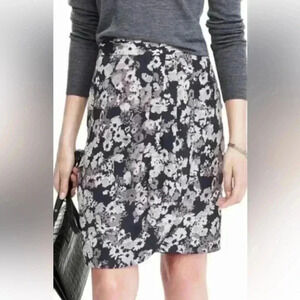 A stylish and versatile Banana Republic floral skirt in a ruched design. The elegant black and white pattern makes it easy to dress up or down. Despite looking knee-length in some images, this is actually a mini skirt. Perfect for work, brunch, or casual outings.
