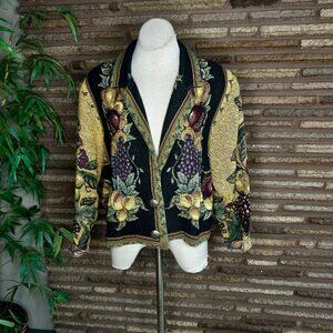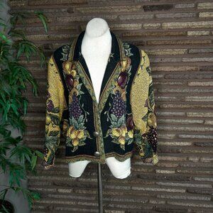 Painted Pony Fruit Harvest Tapestry Jacket 100% Cotton Notch Collar USA Made OS