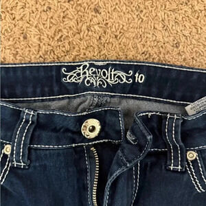 Revolt size 10 jeans. RN 92435,74% COTTON,24% POLYESTER, 2% SPANDEX. Inseam 30”. Dark wash. In excellent condition. Comes from smoke free home.