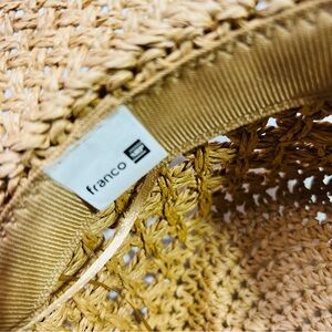 Elevate your style with this tan straw hat, perfect for sunny days. Its classic design adds a touch of sophistication to any outfit.