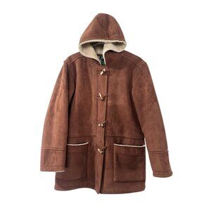 Vintage Ralph Lauren Faux Shearling Duffle Coat Women Small Brown Hooded Western