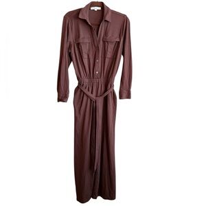 Loft Brown Belted Jumpsuit with Pockets Size Medium Petite