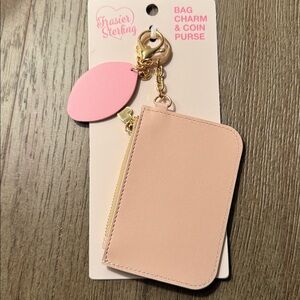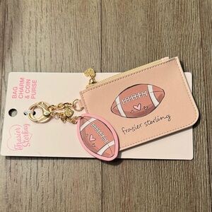 Cute football-themed coin purse and keychain by Frasier Sterling. Features pink and tan colors.