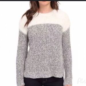 Vince Camuto Gray and Cream Crew Neck Sweater