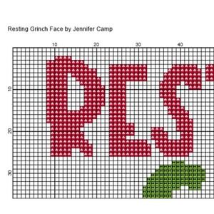 The Grinch Resting Grinch Face Counted Cross Stitch Pattern Chart
