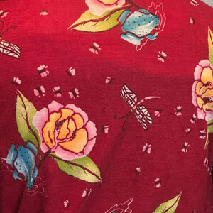 This set has all the hallmarks of the era: wide flared legs, relaxed silhouette, and whimsical nature-inspired print with flowers, butterflies, and dragonflies. Can be worn together for a full statement outfit or styled separately for endless vintage looks.