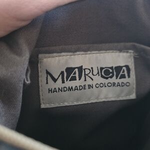 Elevate your style with this chic crossbody bag featuring a striking geometric pattern in blue and green. Perfect for adding a pop of color to your everyday look. Maruca Design was founded in Boulder, Colorado in the early 1990s and specializes in handmade textile bags with distinctive patterns. The company is known for its commitment to local production and sustainable practices. Maruca bags are valued for their unique fabric designs, durability, and artisanal quality. They appeal to consumers seeking American-made products with artistic patterns and functional designs. Measurements in pictures.