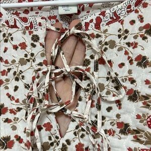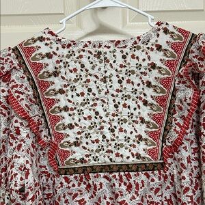 Calypso St. Barth Cotton Boho Top Red and White Pattern Keyhole Neck with Ties