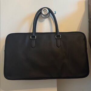 Ralph Lauren Black Faux Leather Duffle Briefcase Bag Zipper Pony Luggage Tag