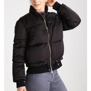 Topshop Black Bomber Puffer Jacket Women's Size 2 Cropped
