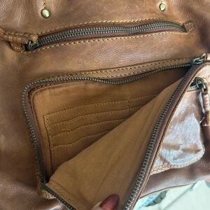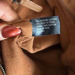 Genuine Leather Cognac Brown Shoulder Tote Bag 2 Front Zipper