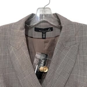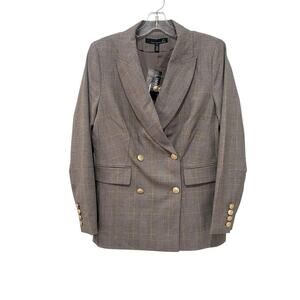 NWT White House Black Market Blazer Womens 8 Taupe Plaid Double Breasted Buttons