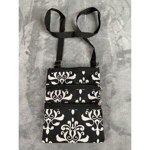 New. NGil Crossbody Bag Black White Messenger Hipster Adjustable 3 Zip Pockets