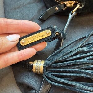This is an authentic SAINT LAURENT Suede Crystal Camera Bag in Black. This elegant shoulder bag is crafted of suede leather in black. The bag features multicolored crystals, a multicolored crystal encrusted YSL logo, and an adjustable shoulder strap. The zipper opens to a fabric interior with a flat pocket.