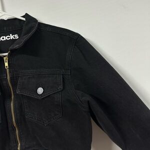 $336 Snacks Mother Women's Black The Chiclet Zip Crop Denim Jacket Size Small