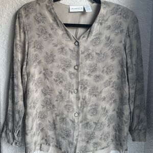 Vintage 90s Silk Liz Claiborne Neutral Floral Button-Up Blouse Petite 8