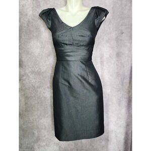 Antonio Melani Dress Size 0 Sheath Metallic Gray Pleated Cocktail Career