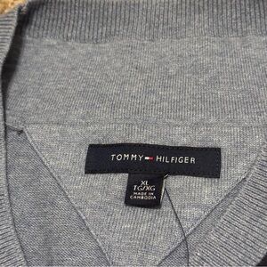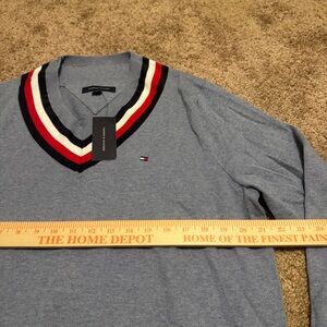 Tommy Hilfiger Sweater Mens XL Blue Pullover Long Sleeve V Neck Logo