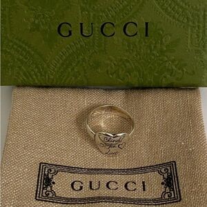 Gucci Silver Blind Love Heart Ring Size 7
