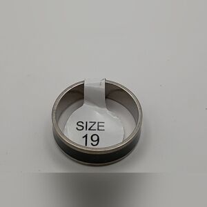Stainless Steel Alloy Men's Black and Silver Ring Band Size 19 U.S Size 9.5