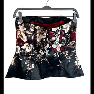 White House Black Market Black Red Floral Corset Top W Boning Size 4