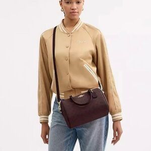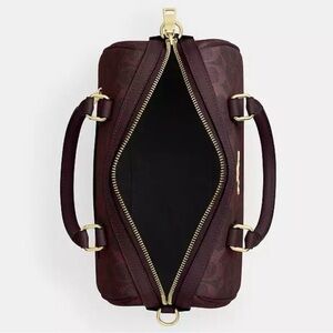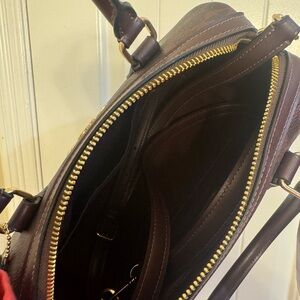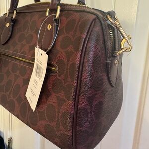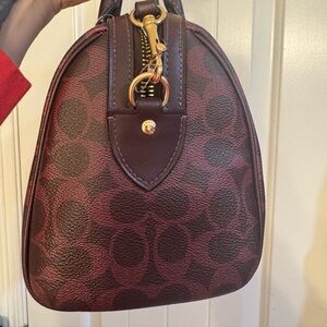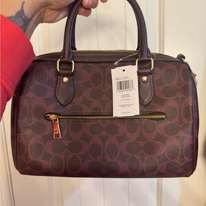Chic Coach satchel in dark red. Features elegant design and premium craftsmanship. Perfect for any outfit. No dustbag, as is, no returns. Regular size never used new with tags too small for me.