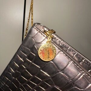 Stella McCartney Metallic Croc Embossed Faux Leather Crossbody Bag on Chain