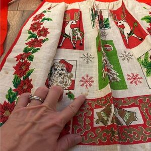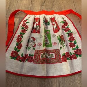 Vintage Linen Festive Red and White Apron Skirt Baking Holiday Christmas