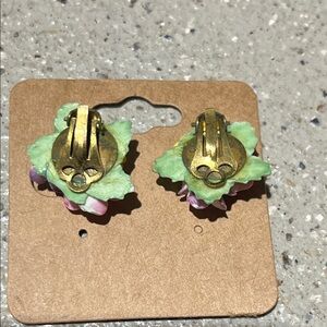 Beautiful floral earrings with pastel colors. Features pink, yellow, and green hues.