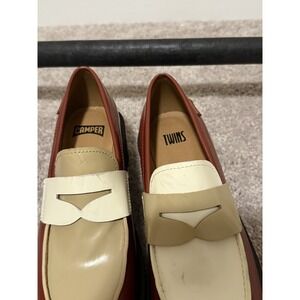 Camper Twins Loafers Brown Leather Moccasin/Ballerina Size 37 7. Condition is Pre-owned - Excellent. Shipped with USPS Ground Advantage.