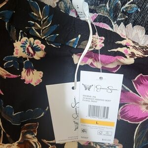Jessica Simpson Black Floral Maxi Skirt With Varied Length Hem