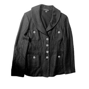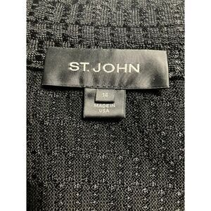 St. John Black Textured Knit Blazer Jacket Gold Buttons Size 14 USA