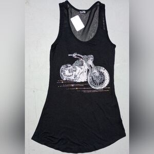 NWT Vocal Black Tank Top with Gem Motorcycle Graphic, Size S